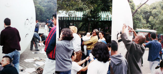 acción colectiva a cargo del taller de interacción urbana (Cynthia Aurea Jiménez, Dante Chávez, Marcela Israel Cabrera, Ivelin Meza, Carlos Mier y Terán, Óscar Pérez y Magalli Salazar). Coordinación de José Miguel Glz. Casanova.