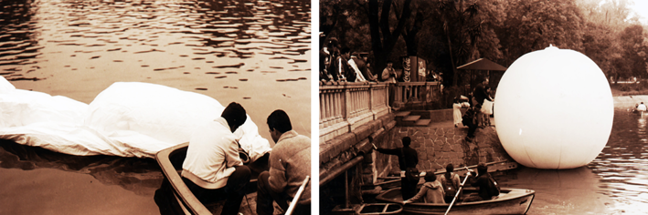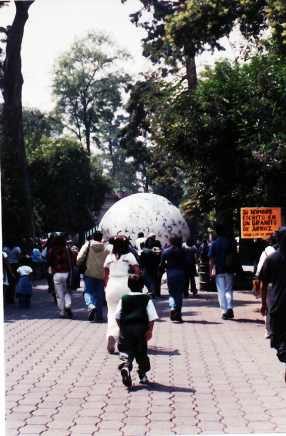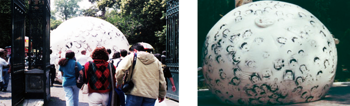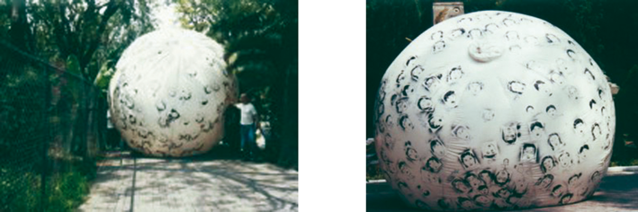 Al final del evento se infló la pelota en el patio de Casa del Lago con gas helio y se mantuvo ahí durante unos días.