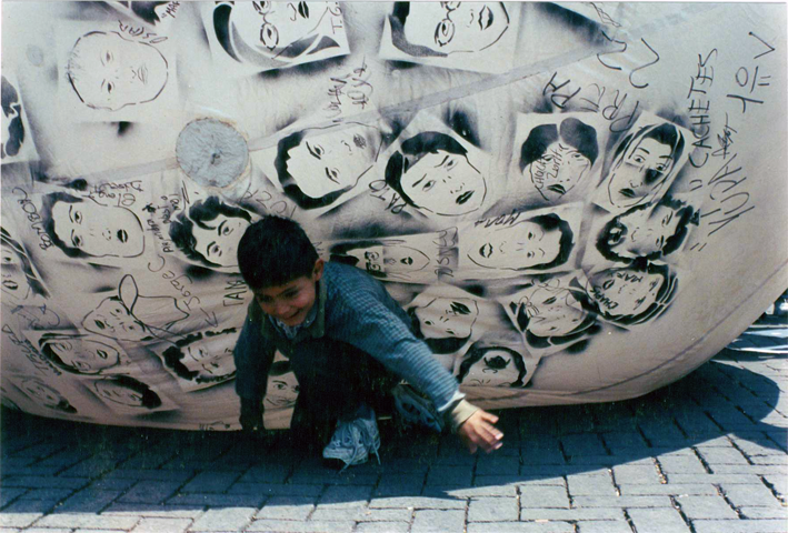 Pintamos sobre la pelota los rostros de las personas que se acercaban con nosotros, por medio de plantillas (variaciones de ojos, narices, orejas, mentones, bocas, etc.), usando aerosol. En varias ocasiones hubo quien decidiera modificar su retrato. De manera colectiva construimos un juego de identidades.